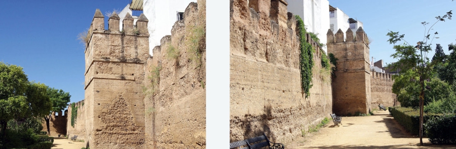 La muralla de Sevilla siempre se atribuyó al cuestor Julio César, que según la leyenda sustituyó las empalizadas fenicias o cartaginesas por altos muros de piedra. Pero no se pueden datar porque no nos llegaron restos de la muralla romana o de épocas anteriores. A lo largo de la historia, la muralla se destruyó y reconstruyó en numerosas contiendas y desastres, y la que nos llegó era árabe, porque ellos la renovaron y la extendieron en los cinco siglos que ocuparon la ciudad. Y digo era, porque en el siglo XIX se eliminó casi por completo en un corto espacio de tiempo.